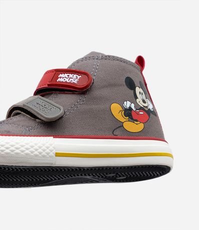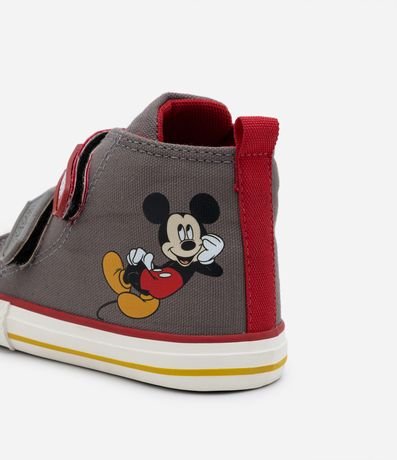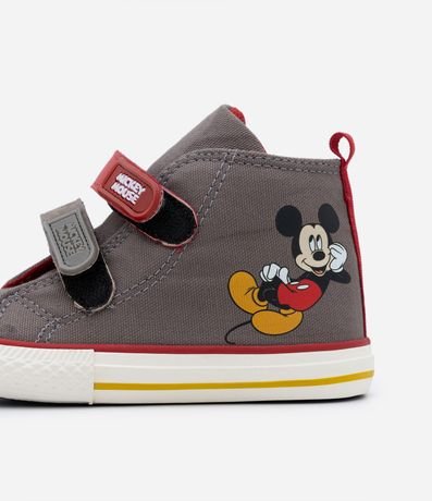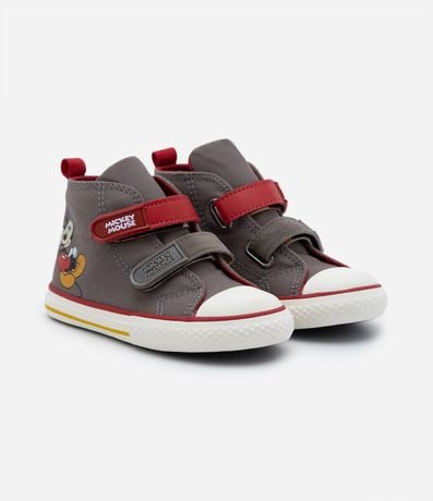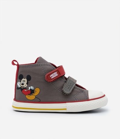Ref: Tênis infantil de modelo botinha, confeccionado em algodão, com bico redondo e solado em borracha. Possui estampa do Mickey com fechamento de tira dupla em velcro.