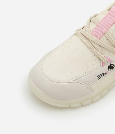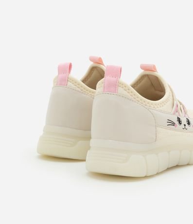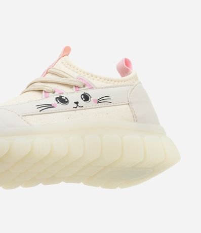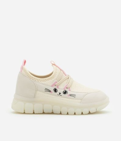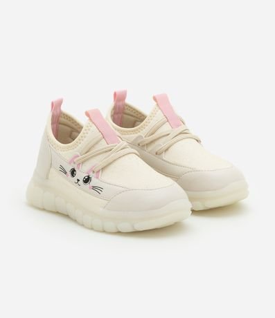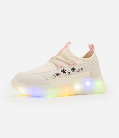 Tênis Calce Fácil Infantil com Sola LED e Estampa Gatinho - Tam 20 ao 27