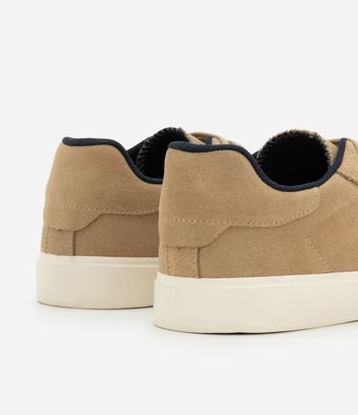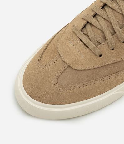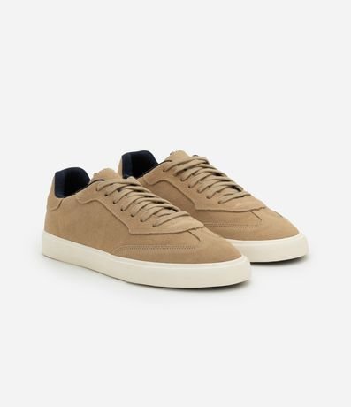 Ref: Tênis masculino confeccionado em camurça, no modelo casual. Possui bico redondo, fechamento por cadarço, recortes e vulcanizado.