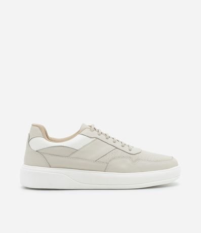 Tênis Casual em Couro com Calce Fácil e Cadarços Elásticos