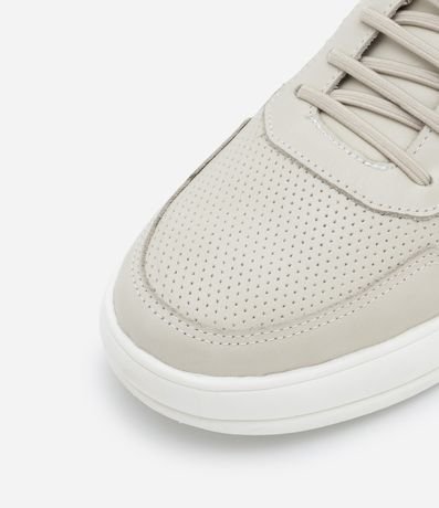 Tênis casual masculino, confeccionado em couro, com calce fácil e fechamento de cadarço elásticos.