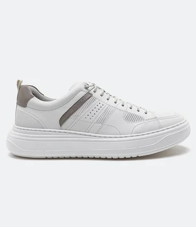 Tênis Casual em Couro com Recortes