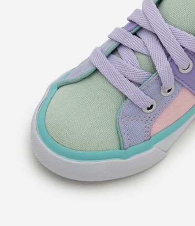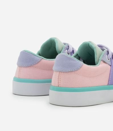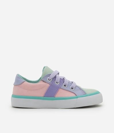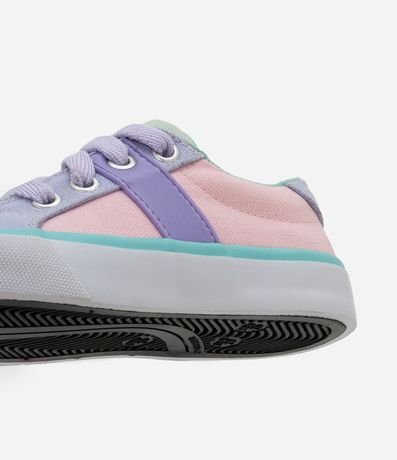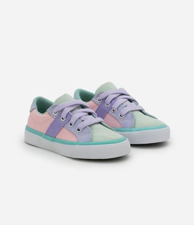 Ref: Tênis infantil de modelo casual, com bico redondo e recortes contrastantes. Possui composição em poliéster e fechamento por cadarço.