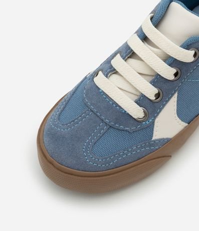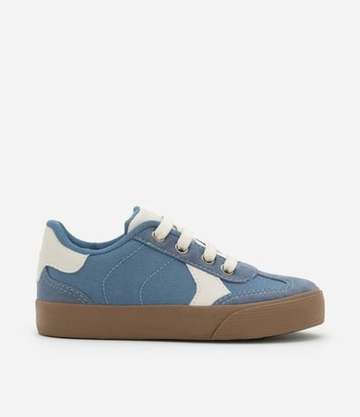 Ref: Tênis infantil de modelo casual, com bico redondo e recortes contrastantes. Possui composição em material sintético e fechamento por cadarço.
