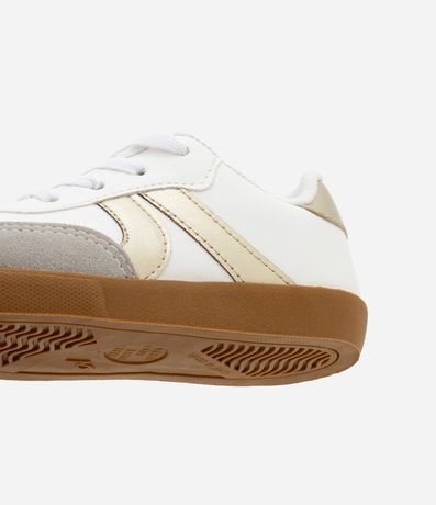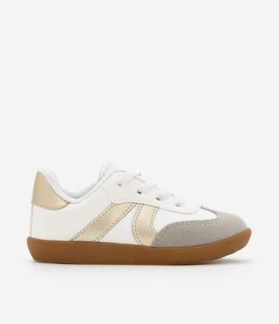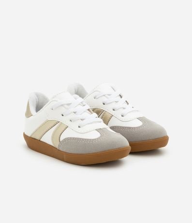 Ref: Tênis infantil de modelo casual, com bico redondo e recortes contrastantes. Possui composição em material sintético e fechamento por cadarço.