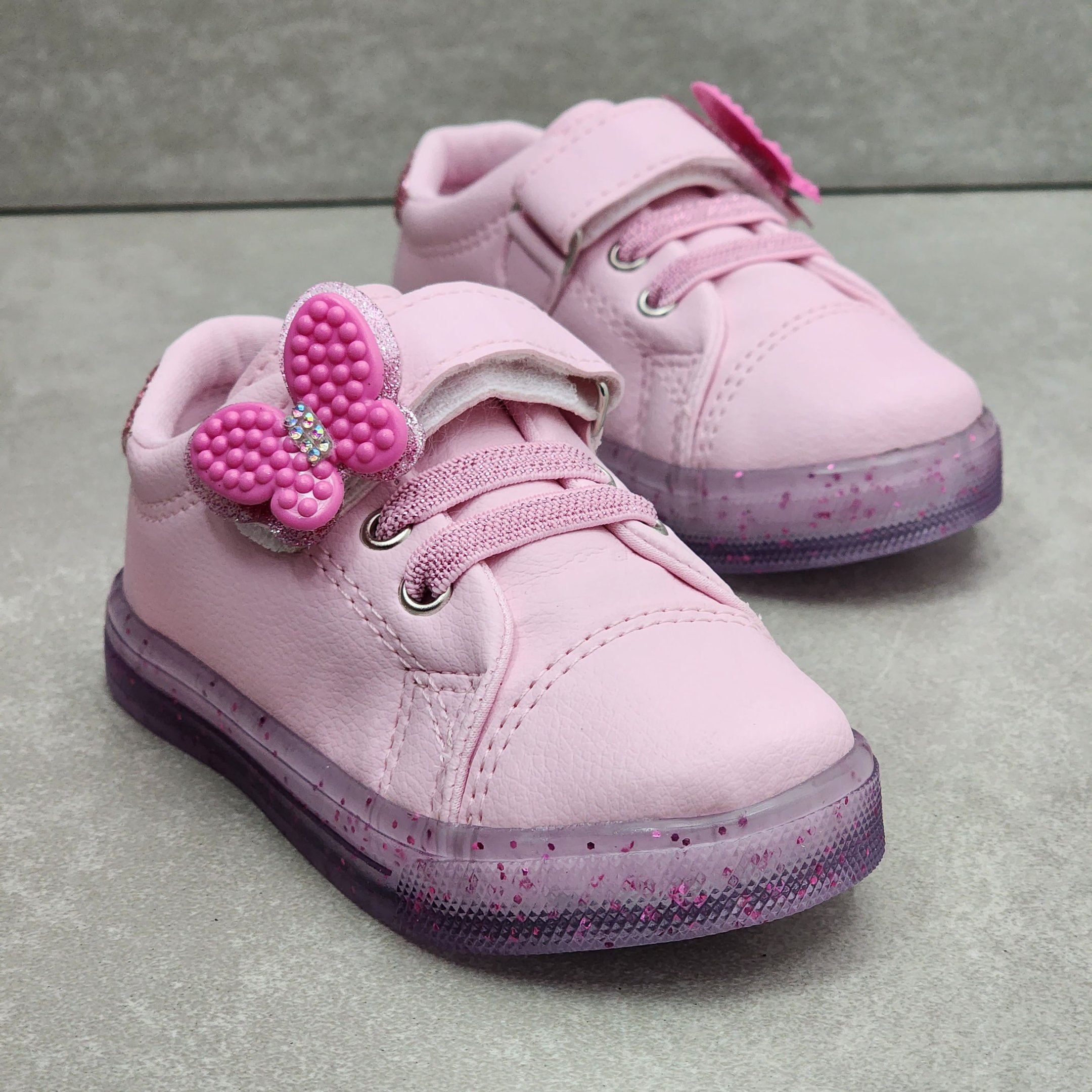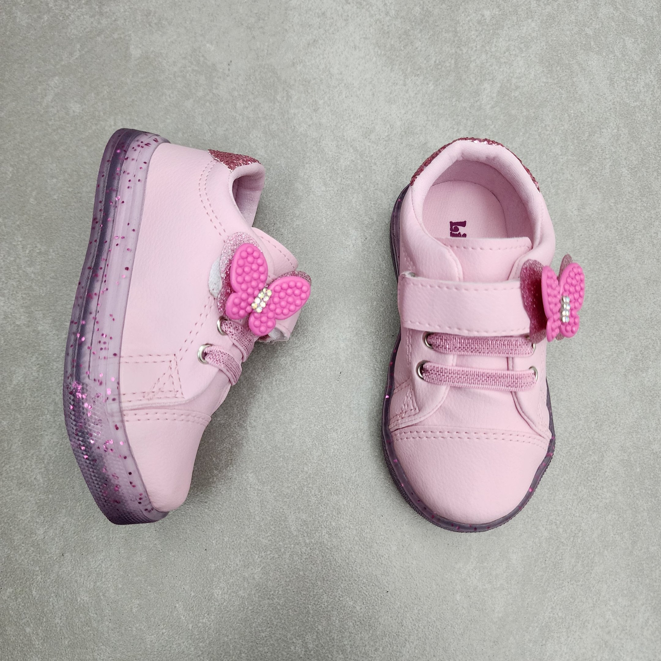 Ref: Com os tênis infantis da marca LINDA JU a criançada terá diversão e conforto garantido. O modelo é produzido em material sintético, possui ajuste elástico no cabedal junto com uma tira de velcro com aplicação de uma borboleta 3D, possui um recorte traseiro com glitter. Cano forrado em tecido e palmilha removível em EVA. Solado em borracha antiderrapante transparente com glitter injetado.