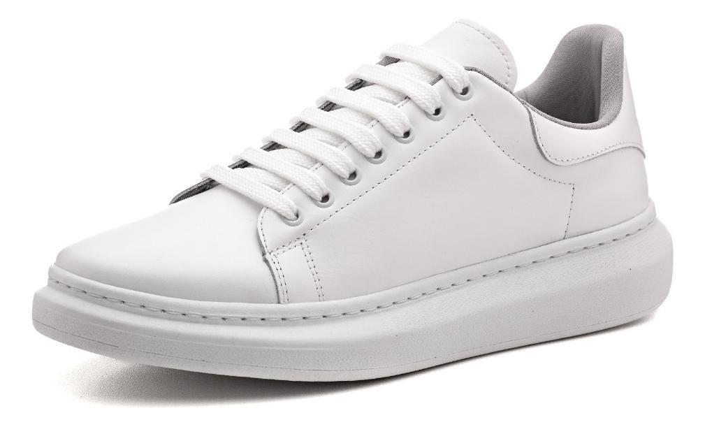 O Tenis Casual Masculino e a escolha ideal para quem busca estilo moderno aliado ao conforto no dia a dia. Produzido em couro de alta qualidade, traz design clean inspirado no modelo McQueen, perfeito para compor looks casuais e urbanos.  Material Externo: Couro  Material Interno: Tecido antibacteriano que garante mais respirabilidade  Fechamento: Cadarco para ajuste pratico e seguro  Solado: Micro-emborrachado, com 4,5 cm de altura, leve e resistente  Palmilha: EVA macio, proporcionando conforto prolongado  Genero: Masculino  Um modelo versatil, elegante e confortavel, ideal para quem busca autenticidade e estilo em cada passo.