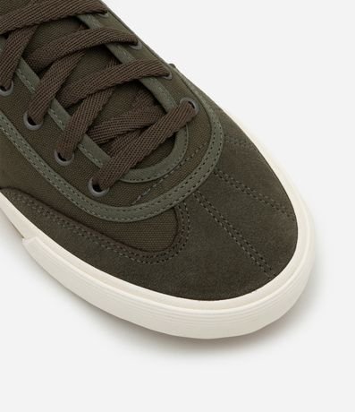 Ref: Tênis masculino, confeccionado em sarja, no modelo casual, estilo retô. Possui fechamento em cadarço, recortes e solado mais alto com detalhes contrastantes.