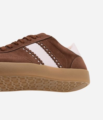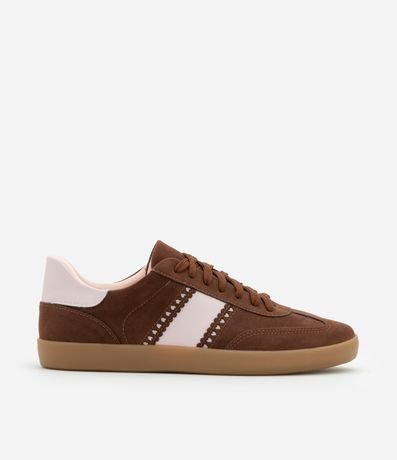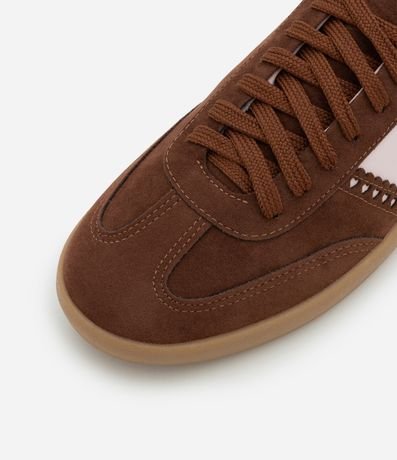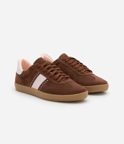 Ref: Tênis feminino confeccionado em material sintético, peça no modelo chuteira com bico redondo, cadarço frontal, detalhe de recortes e corações.