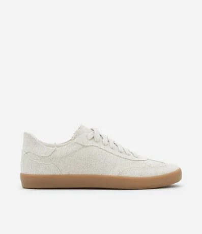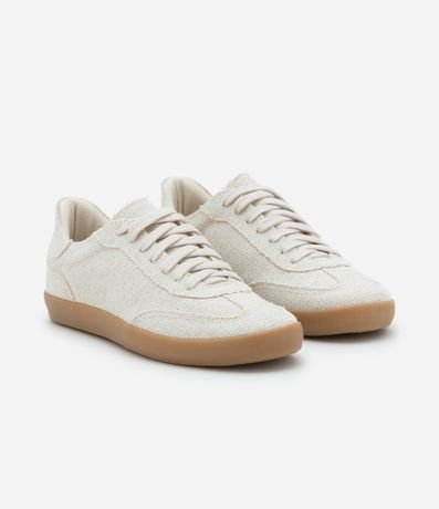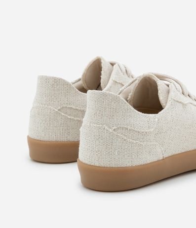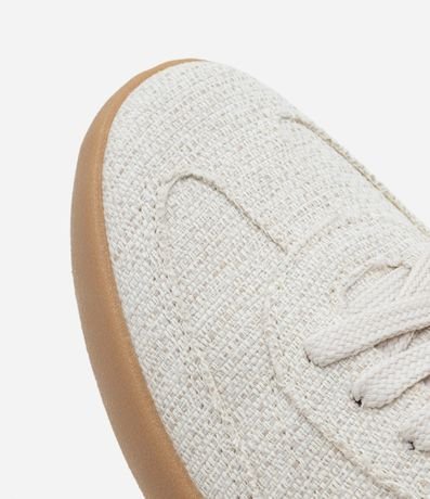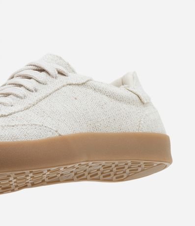 Ref: Tênis cano curto modelo chuteira, em material têxtil, com recortes e acabamento desfiadinho, cadarço para amarração e solado contrastante