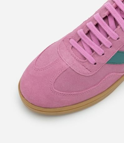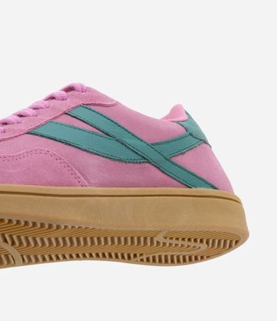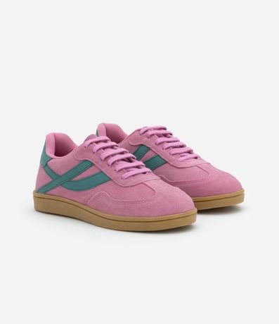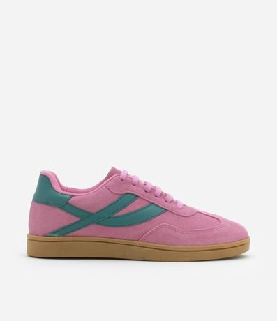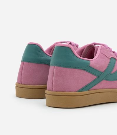 Tênis feminino, confeccionado em couro, com fechamento em cadarço e detalhe lateral contrastante. O modelo que é casual possui um aspecto de chuteira, sendo muito compatível ao estilo moderno e fashion: sportcore.