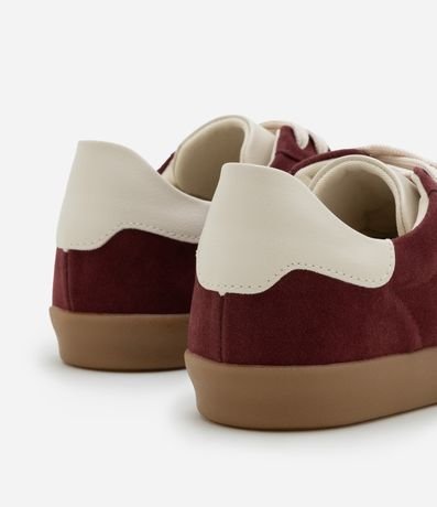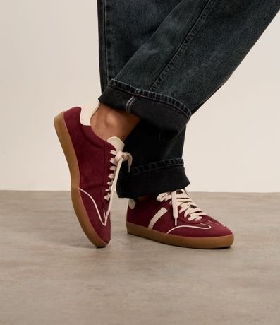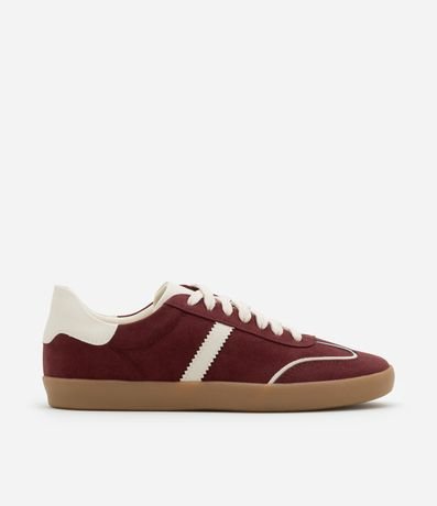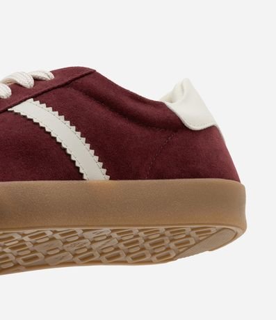 Ref: Tênis feminino modelo chuteira com listras contrastantes e sola baixa.