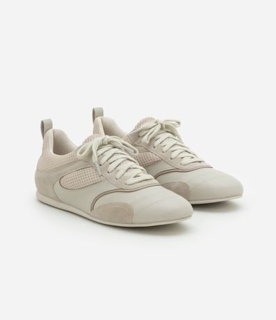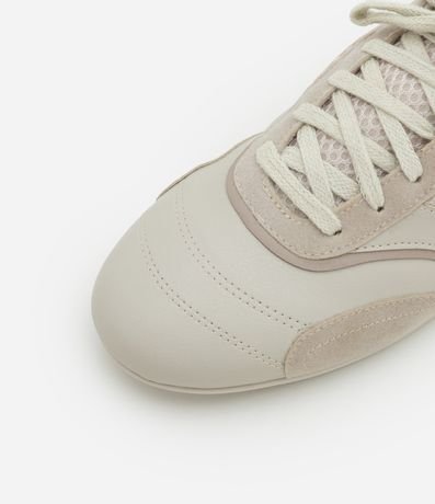 Tênis chuteira feminina, confeccionado em PU, com fechamento de cadarço, recortes, detalhes em mesh e sola flat.