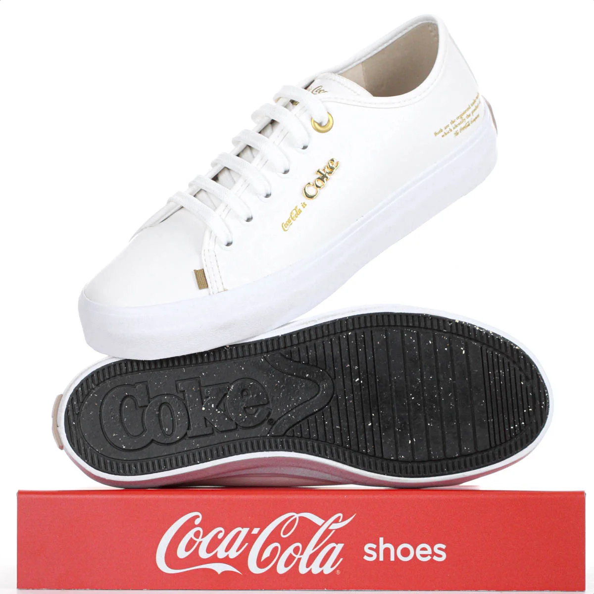 Estilo e autenticidade para o seu dia a dia! Tenis Coca Cola Key West Town Branco e Dourado - Feminino Parte superior do formulario Ficha Tecnica: Marca: Coca-Cola Shoes Genero: Feminino Cor: Branco com detalhes em dourado Cabedal: Sintetico Solado: Borracha antiderrapante Fechamento: Cadarco Lingueta: Fina e flexivel Salto: 3cm (aproximadamente) Palmilha: EVA com o logotipo da marca Diferenciais: Detalhes em costura pelo cabedal, frase Coke is Coca-Cola / Coca-Cola is Coke estampada na lingueta e pin lateral com a frase is Coca-Cola Eleve seus looks com o Tenis Coca Cola Key West Town! Porque investir: Com design contemporaneo e detalhes dourados que traduzem elegancia, este modelo conquista pelo estilo unico e identidade marcante. A palmilha em EVA garante conforto durante todo o dia, enquanto o solado antiderrapante oferece seguranca a cada passo. Ideal para compor producoes com atitude e personalidade. Aposte no visual urbano com o charme exclusivo da Coca-Cola Shoes. Conteudo da embalagem: 1 par de Tenis Coca Cola Key West Town Branco e Dourado - FemininoParte superior do formulario