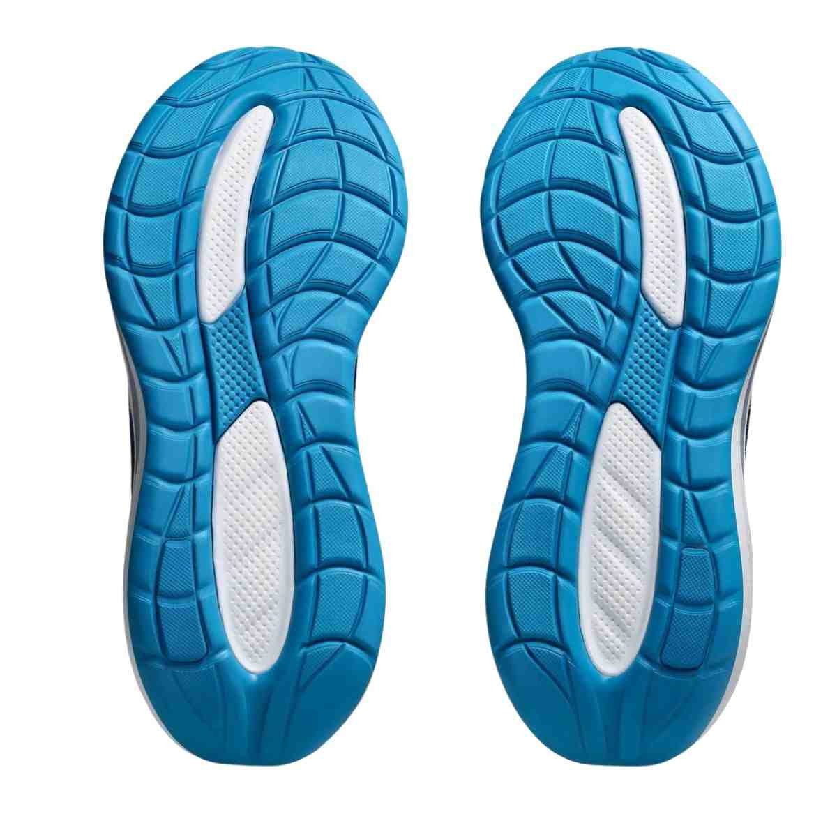 O solado combina tecnologias que favorecem a fluidez da corrida e aumentam a resistência ao desgaste.