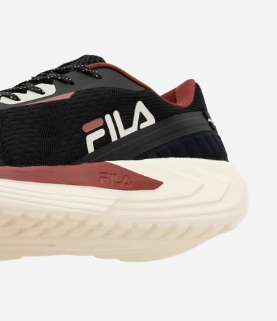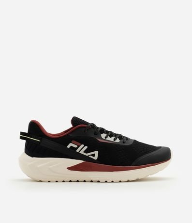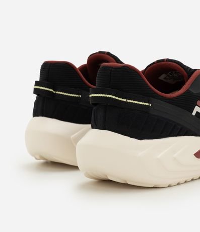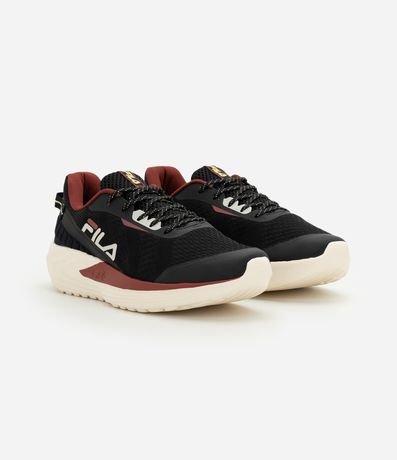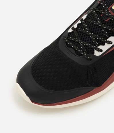 Tênis masculino, confeccionado em material sintético, com recortes e fechamento em cadarço.
