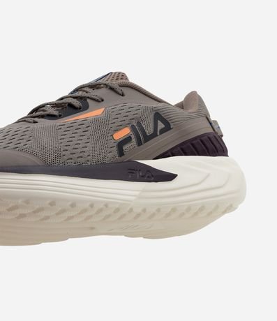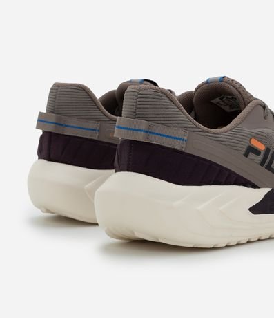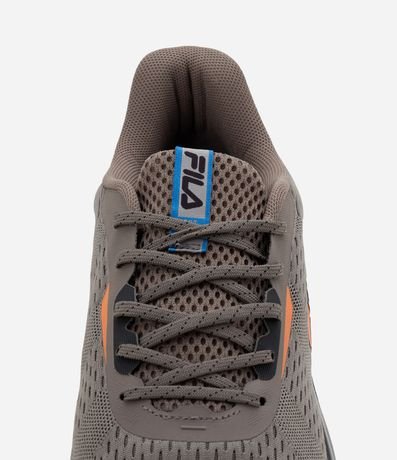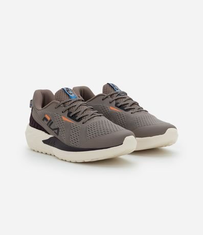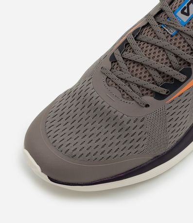 Tênis masculino, confeccionado em material sintético, com recortes e fechamento em cadarço.