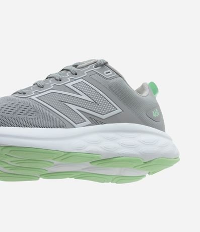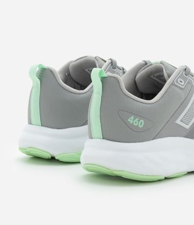 Tênis feminino esportivo no modelo 460 V4 com bico atacador, cadarço frontal, recortes, telinha e salto contrastante.