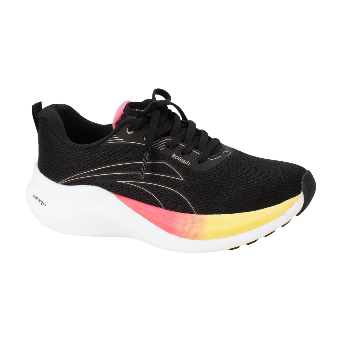 Conheça o Tênis Kolosh E0466 na elegante combinação de preto com detalhes em coral - pensado para quem quer unir praticidade e visual moderno na rotina.