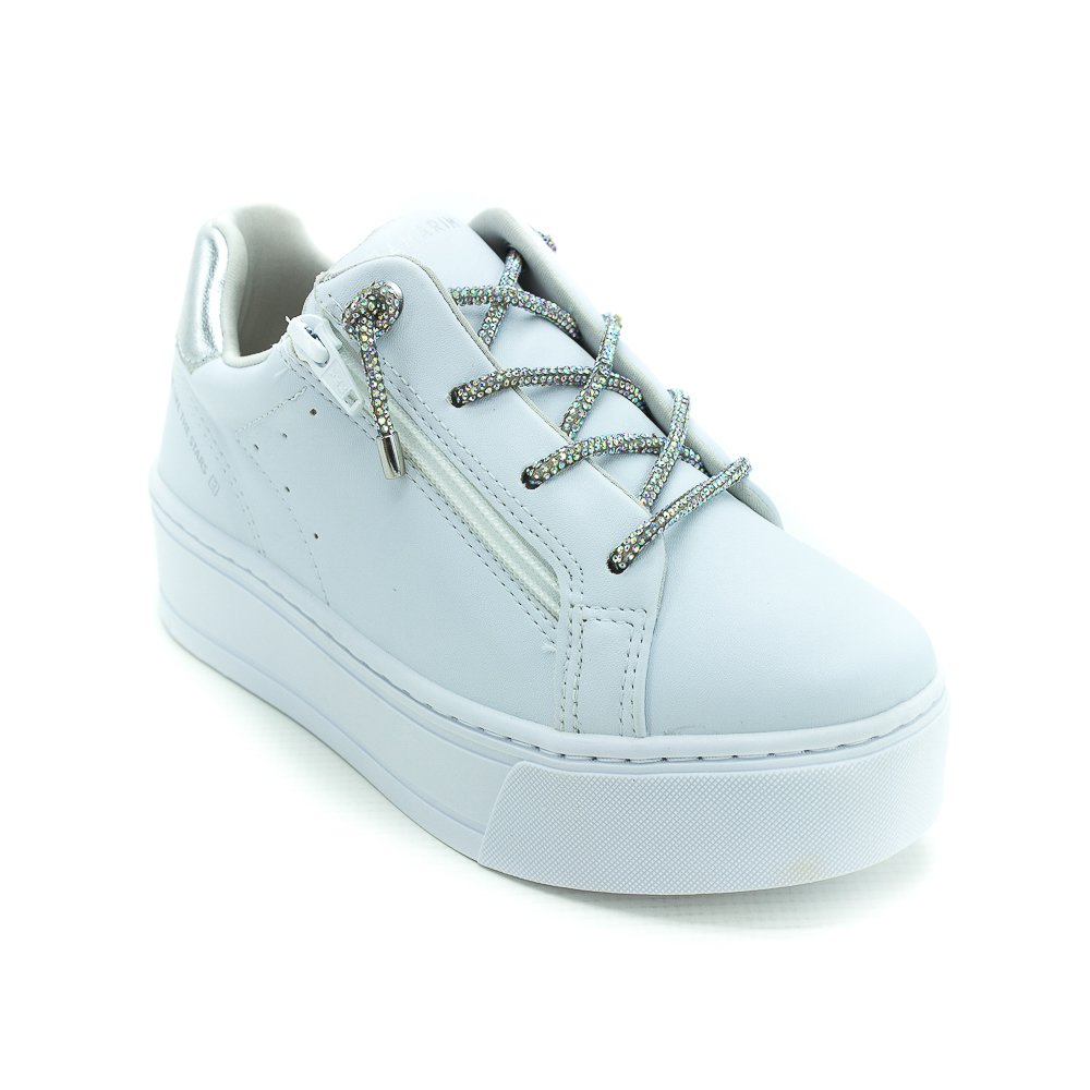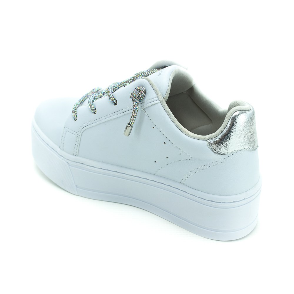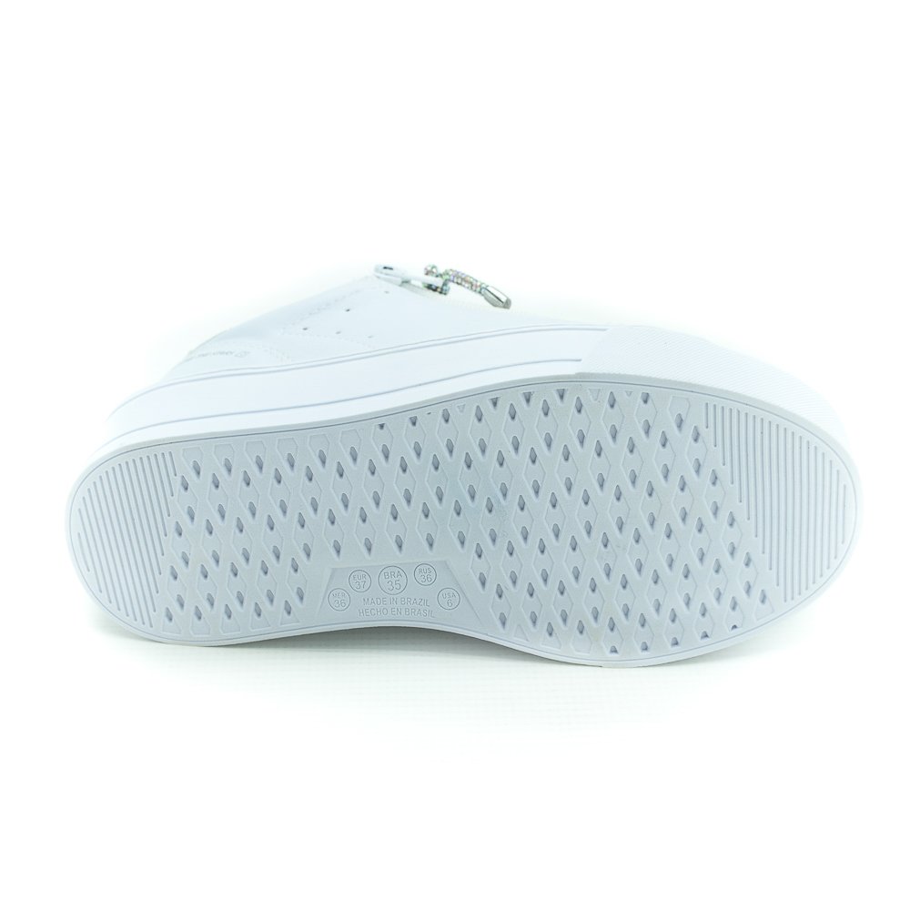 O básico branco nunca foi tão elegante! Seu design inovador é realçado por um detalhe surpreendente: zíper na lateral, adicionando um toque de ousadia e modernidade à peça. Mas o que realmente faz deste tênis ser uma joia rara é os detalhes em strass delicadamente posicionados no atacador conferindo um toque de glamour. Sua versatilidade permite combinações com jeans, saias, vestidos e outras peças do seu guarda-roupa, tornando-o uma escolha certeira para qualquer momento. Brilhe a cada passo com esse modelo, onde o luxo do strass encontra a praticidade do zíper.