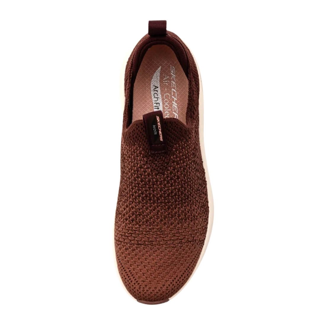 Ref: Tênis Feminino Skechers Slip On 149776br/Wmlt Arch Fit New: conforto e estilo que acompanham seu ritmo diário. Com design slip on, oferece praticidade para calçar e tirar, ideal para mulheres que buscam agilidade sem abrir mão do conforto. A tecnologia Arch Fit garante suporte anatômico para o arco do pé, reduzindo o cansaço e prevenindo dores, perfeito para longas caminhadas ou uso prolongado.