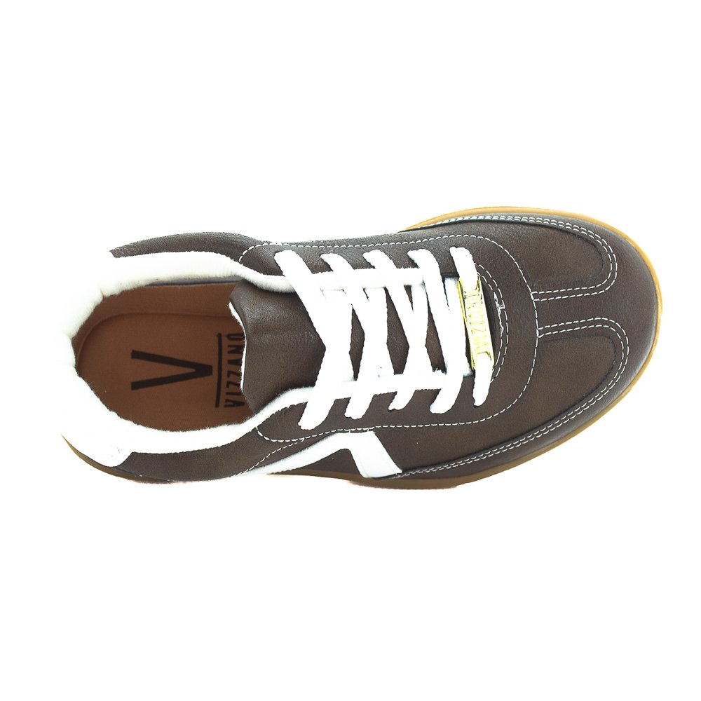 Tênis Feminino. -Casual. -Bico redondo. -Interno Têxtil. -Calcanhar com reforço em espuma. -Palmilha removível. -Detalhe em perfuros na lateral. -Detalhe recortes em napa e camurça em outro tom.