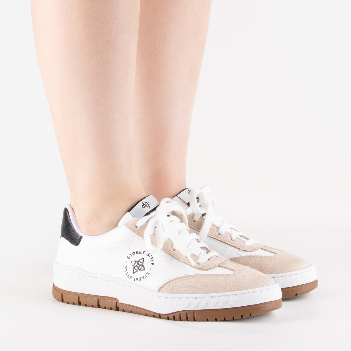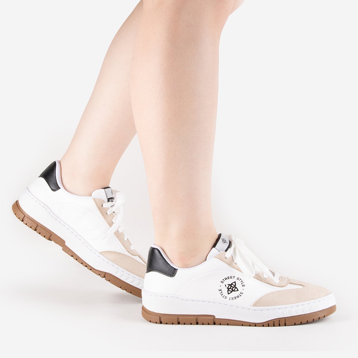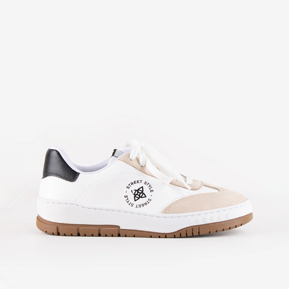 Design e Estilo (Street Style) O Tênis Grace é a peça chave para o seu Street Style com um toque de sofisticação. Seu design moderno, com o contraste elegante do acabamento em couro branco e os detalhes em camurça bege e preto, garante um visual despojado e marcante. Ele oferece a versatilidade para elevar looks casuais e dar um toque fashion a produções mais sofisticadas do dia a dia. É um calçado que reflete atitude e estilo em cada detalhe. Conforto e Versatilidade O Tênis Grace é a união perfeita de moda e conforto para a sua rotina. Com um interior acolchoado e um acabamento em couro que se adapta ao formato do pé, ele proporciona o bem-estar necessário para longas jornadas. A estrutura do solado garante estabilidade e uma pisada macia, tornando-o ideal para acompanhar você com praticidade e leveza, sem que você precise abrir mão do estilo. Características Gerais do Produto: MATERIAL EXTERNO: COURO MATERIAL INTERNO: SINTÉTICO Garantia: Trocas e Devoluções | Criada com base no Código de Defesa do Consumidor