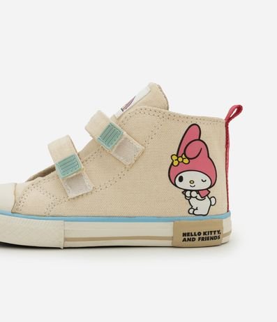 Ref: Tênis infantil abotinado confeccionado em poliéster com solado em borracha vulcanizada, garantindo conforto e resistência. Possui fechamento por tiras com velcro, puxadores traseiros e estampas divertidas da Hello Kitty e My Melody.