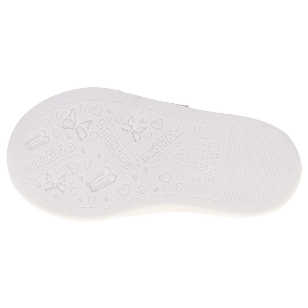 Aposte no Tênis Infantil Baby Molekinha. Confeccionado em Tecnologia Poa Paris e Metalizado Glam. Internamente é forrado em têxtil, com fechamento por fita duplamente aderente. A palmilha em PU é acolchoada e macia, enquanto o solado em borracha oferece segurança em cada passo.