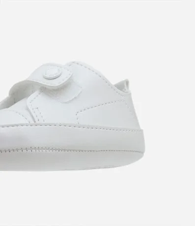Ref: Tênis infantil confeccionado em poliéster, com bico redondo e tira para fechamento com botão.
