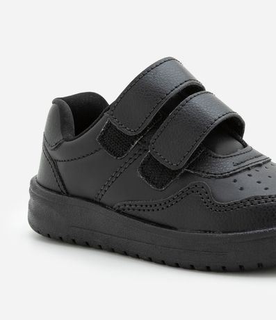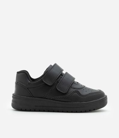 Ref: Tênis infantil confeccionado em material sintético, no modelo básico. Possui fechamento por velcros, bico redondo, cano baixo, recortes, furinhos respiráveis e sem estampa.