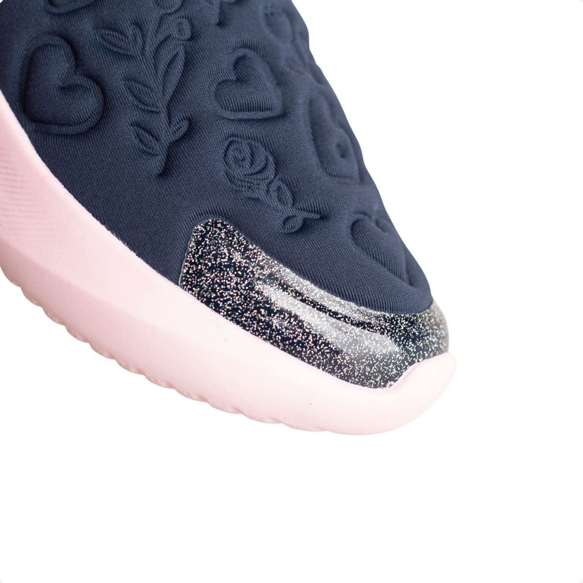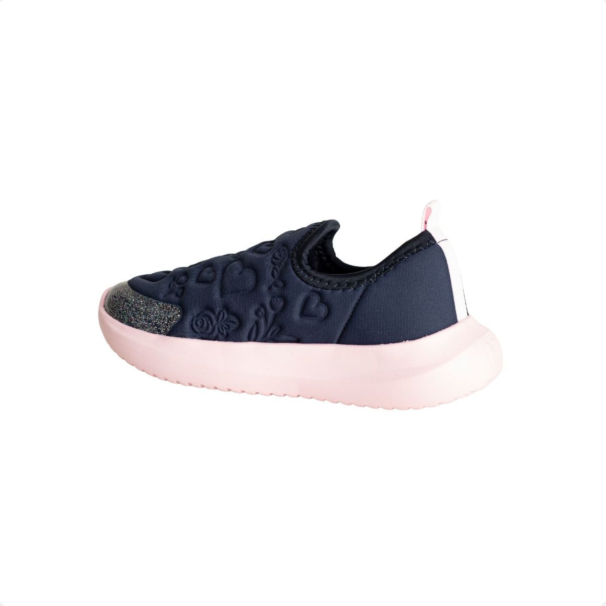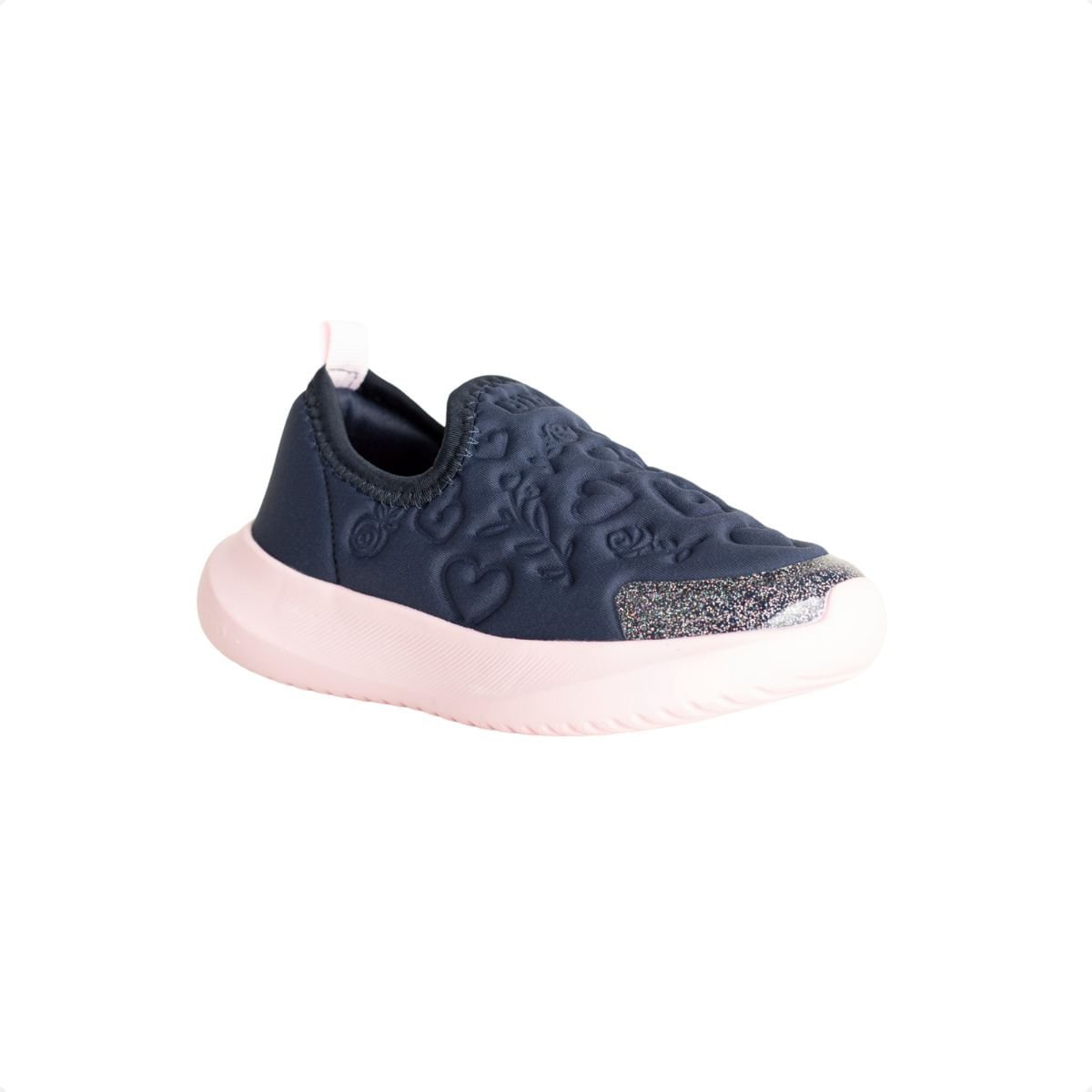 Experimente o modelo de tênis infantil feminino da linha Flash na cor azul marinho e solado rosa, o calçado infantil perfeito para as maiores aventuras das meninas!