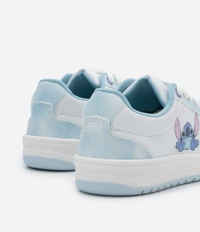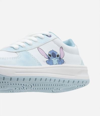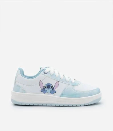 Ref: Tênis infantil de modelo casual, confeccionado em pvc, com bico redondo, recortes contrastantes e estampa do Stitch. Possui fechamento por cadarço.