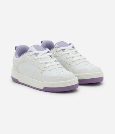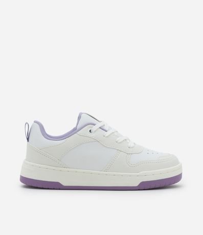 Ref: Tênis infantil de modelo casual, confeccionado em PU, com bico redondo, com recorte, sola contrastante e sem estampa. Possui fechamento por cadarço.