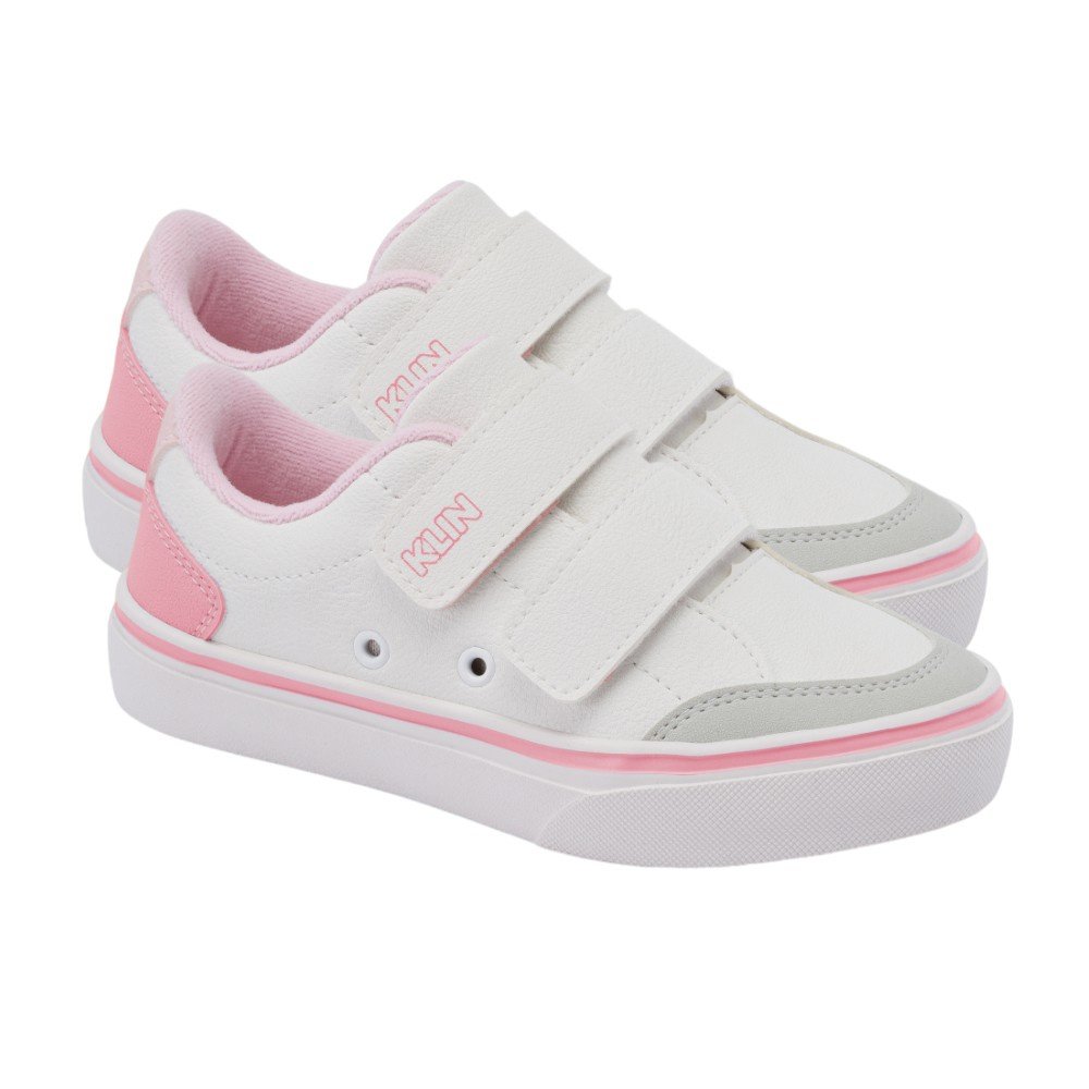 Tênis Infantil Casual Menina Klin Freestyle Mini Street Branco Rosa Doce
