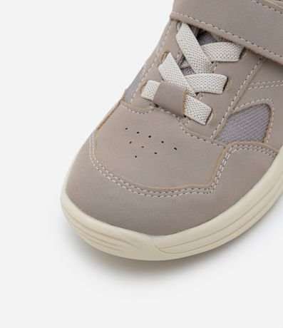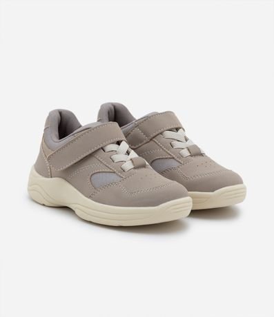 Ref: Tênis infantil com cadarço para amarração, tira de velcro e solado diferenciado.