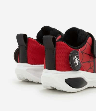 Ref: Tênis infantil com cano baixo, recortes, estampa do Homem-Aranha e solado com luzinhas em LED.
