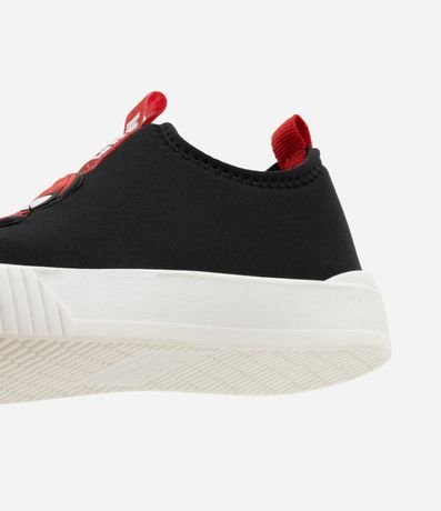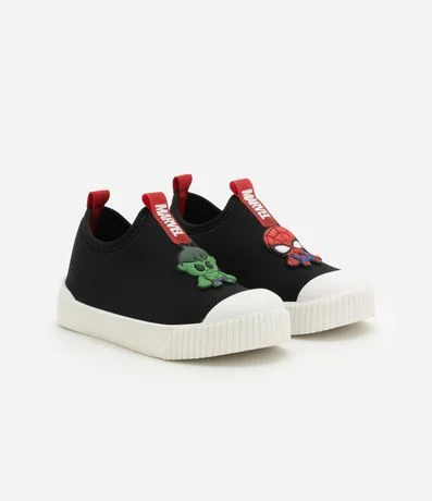 Ref: Tênis infantil com cabedal em poliéster e solado em borracha, garantindo conforto e durabilidade. Possui aplicação de patches dos personagens Marvel, bico arredondado e puxadores traseiros para facilitar o calce.