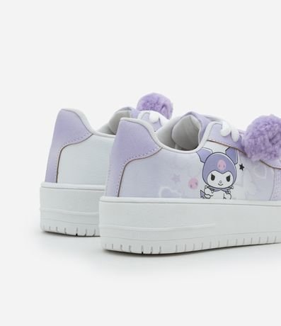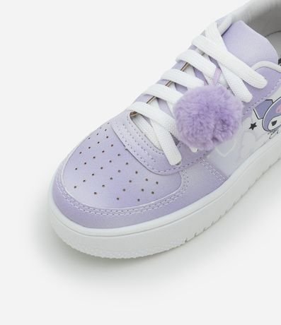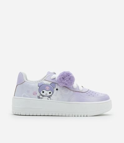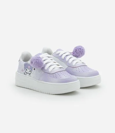 Ref: Tênis infantil confeccionado em material sintético, com cano curto, bico redondo e solado baixo. Possui fechamento por cadarço, pompom aplicado e estampa lateral da Kuromi.