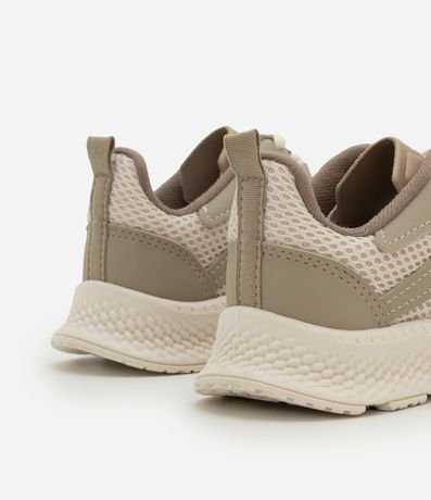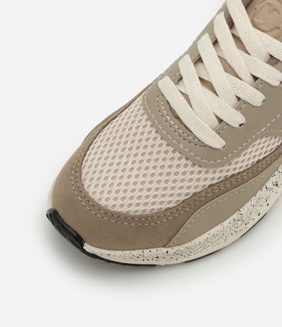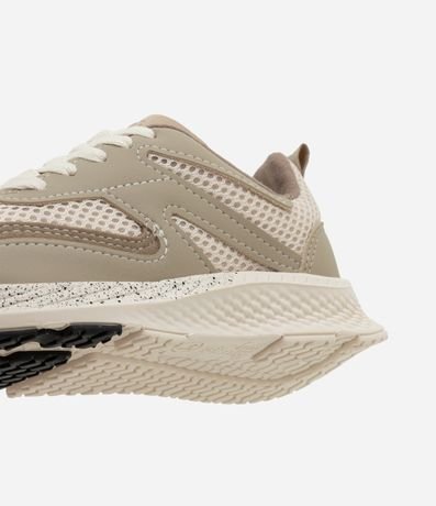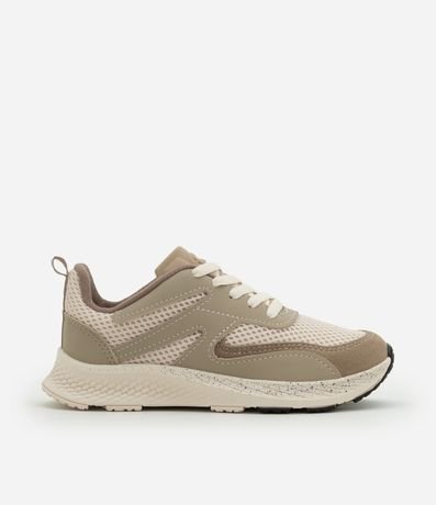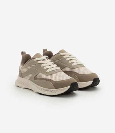 Ref: Tênis infantil confeccionado em poliéster, possui bico redondo com atacador, solado com detalhe de "respingos", fechamento por cadarços, recortes contrastantes e texturizado.