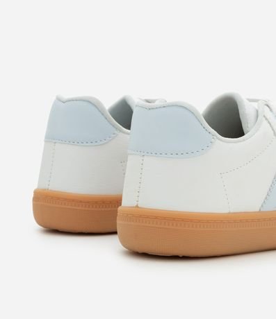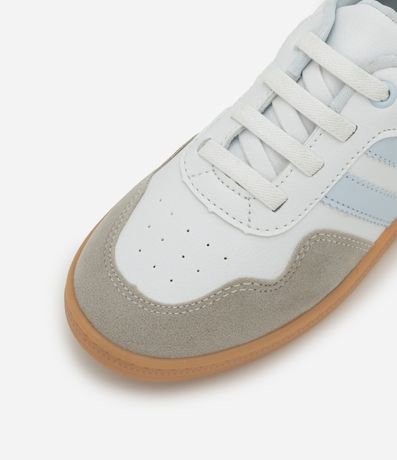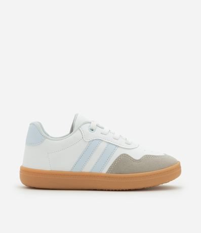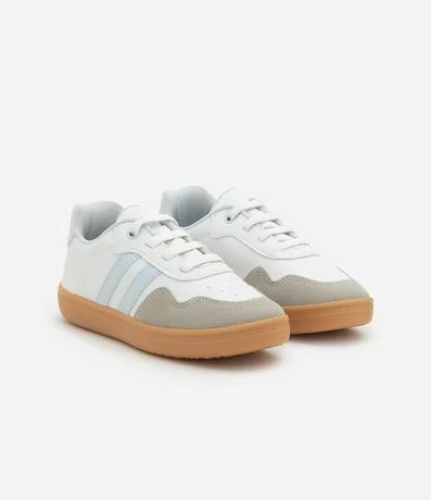 Ref: Tênis infantil cano baixo, com cadarço, recortes contrastantes na lateral.