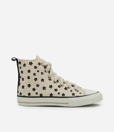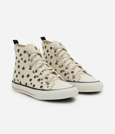 Tênis Infantil em Lona Cano Alto com Estampa Floral – Tam 28 a 35