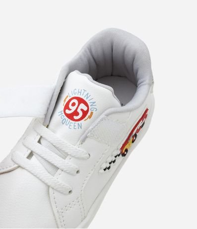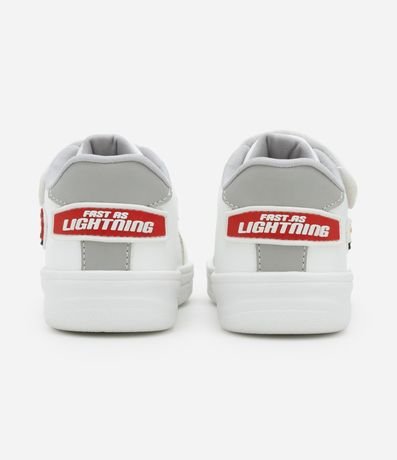 Ref: Tênis infantil, confeccionado em material sintético. Possui bico redondo, com recortes, solado médio, patch dos Carros e fechamento por velcro e cadarço.