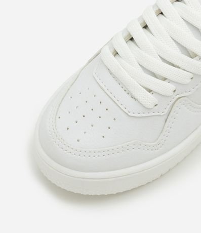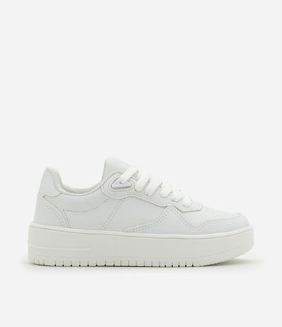 Ref: Tênis infantil confeccionado em material sintético. Possui fechamento por cadarços, bico redondo, cano baixo, sola média, recortes e furinhos respiráveis.