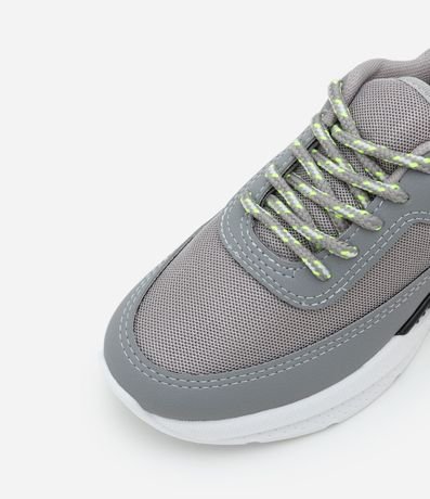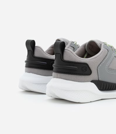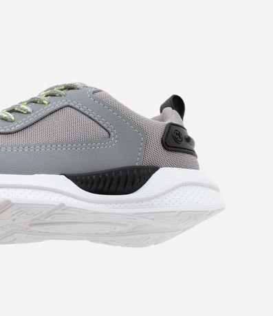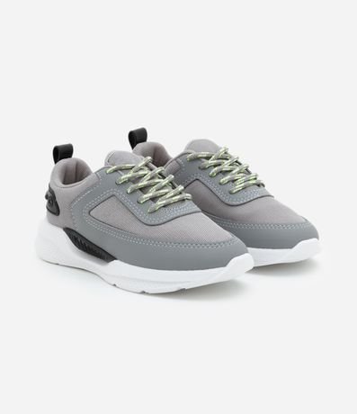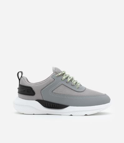 Ref: Tênis infantil esportivo confeccionado em pvc, peça com bico redondo, cadarço contrastante, detalhe de recortes e sola média contrastante.