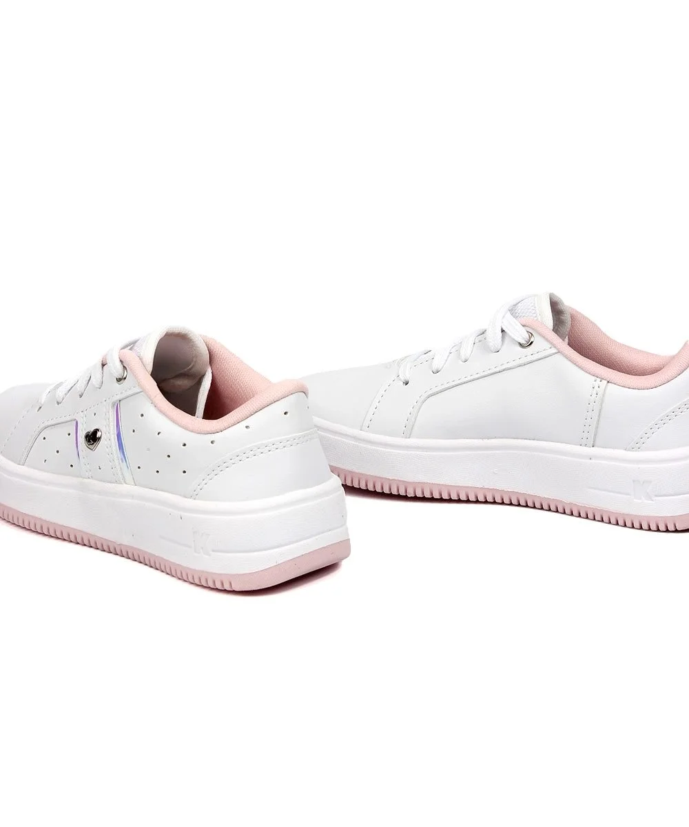 O fechamento em cadarço permite um ajuste seguro e personalizado. E o toque final de charme fica por conta de um mini coração metalizado delicado na lateral do cabedal, que acrescenta um detalhe especial ao visual.