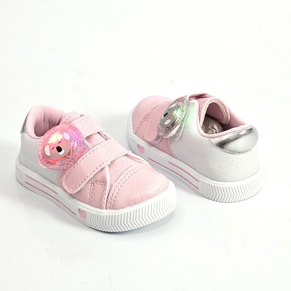 Encante os passos da sua pequena com o Tênis Infantil Menina LED Coala, um calçado que une estilo, conforto e muita diversão. Este tênis, na delicada combinação de rosa e branco, é confeccionado em material sintético resistente. O grande destaque fica por conta do botão em formato de coala com luzes de LED, que se acendem a cada pisada, transformando a brincadeira em um show de luzes. O fechamento em velcro duplo garante um ajuste perfeito e praticidade para o dia a dia, permitindo que a criança se calce com mais facilidade. Ideal para a escola, passeios ou festinhas, a sola antiderrapante oferece segurança, enquanto o design com glitter e corações adiciona um toque mágico e adorável.Referência: 202454