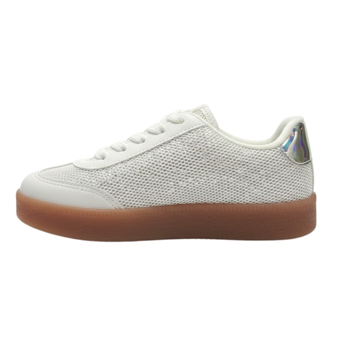 Ofereça à sua filha conforto e estilo com este tênis infantil branco, ideal para meninas que adoram estar na moda sem abrir mão da praticidade. O solado emborrachado garante segurança e aderência, perfeito para brincadeiras e passeios. O cabedal em tecido e paetê brilhante proporciona respirabilidade e um toque fashion que faz toda a diferença no visual.