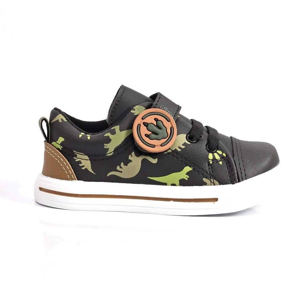 Leve a diversão dos dinossauros para os pés do seu pequeno com o Tênis Infantil Menino Lindo Ju Dinossauro, um calçado que une conforto, estilo e aventura. Confeccionado em material sintético resistente, este tênis na cor preta apresenta uma estampa camuflada com dinossauros em verde e tons terrosos, além de um detalhe com formato de pegada. O fechamento é uma combinação de cadarço elástico e tira aderente, o que proporciona um ajuste fácil e seguro para a criança. A sola de borracha antiderrapante garante estabilidade para brincar e correr com segurança. Ideal para o dia a dia, passeios ou para a escola, este tênis é a escolha perfeita para os pequenos que amam dinossauros.