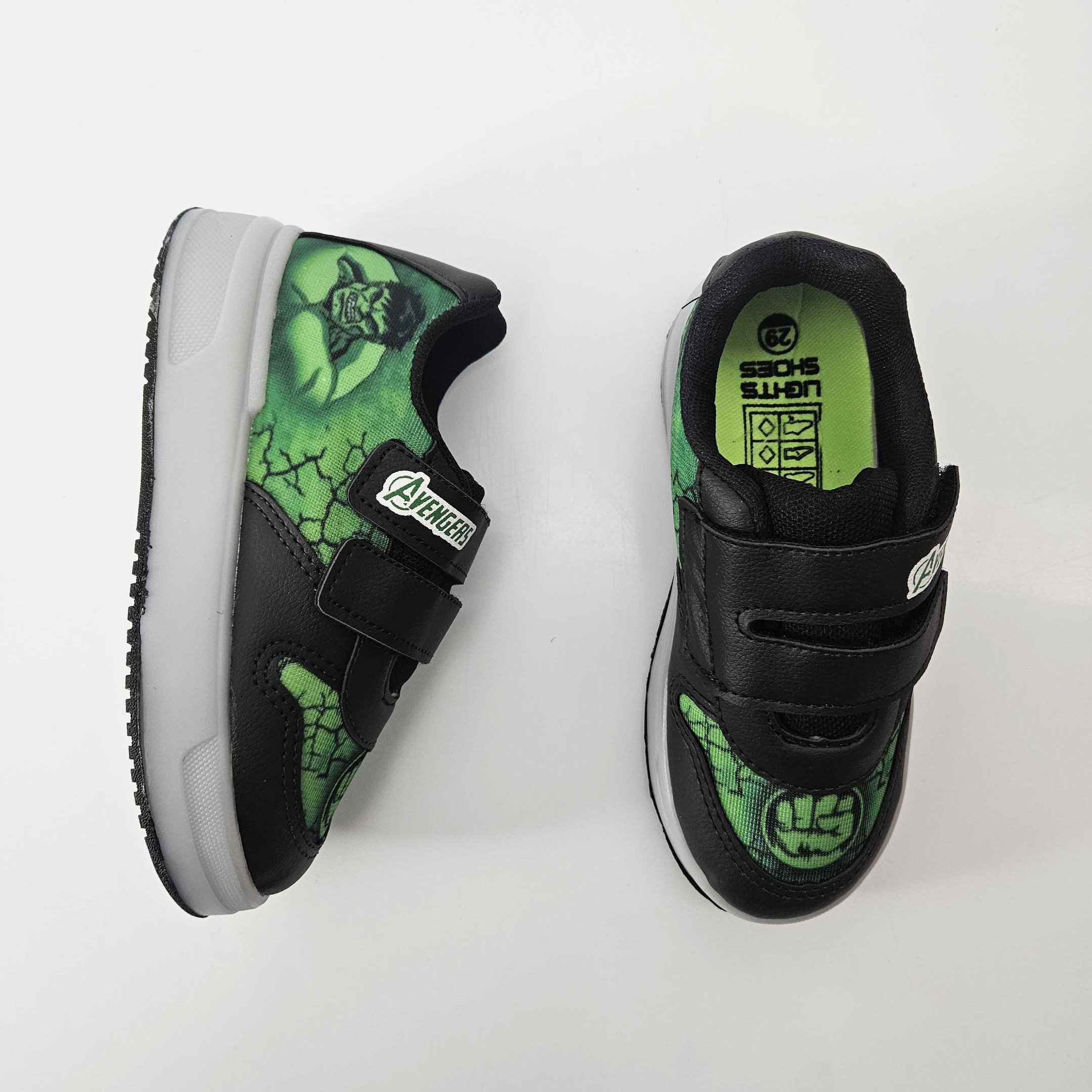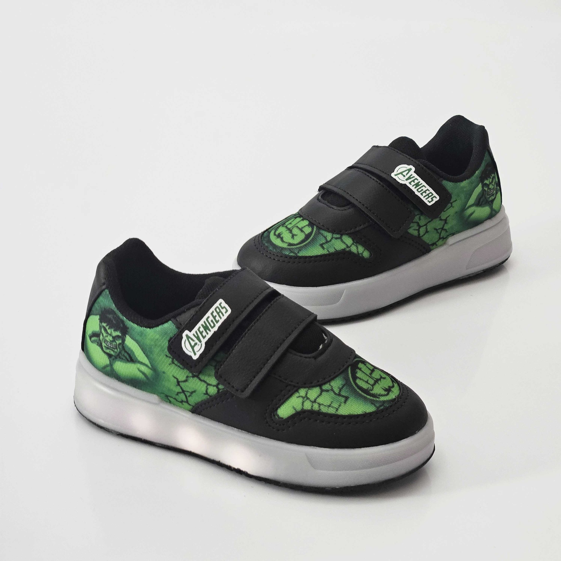 Trazendo diversão e estilo para a criançada, o tênis Casual de led da Mini pé já é o maior sucesso. O modelo é produzido em tecido estampado que remetem ao personagem Hulk, possui recortes em sintético para maior resistência e durabilidade. O fechamento por velcro no cabedal garante um melhor ajuste aos pés. Cano e lingueta acolchoados e palmilha removível em EVA oferecem maior conforto para os pés. A entressola possui Leds que são ativados a cada passo. Solado em borracha antiderrapante.Led não recarregável.